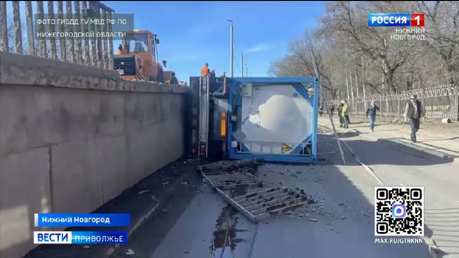 Тягач с цистерной опрокинулся с виадука в Нижнем Новгороде