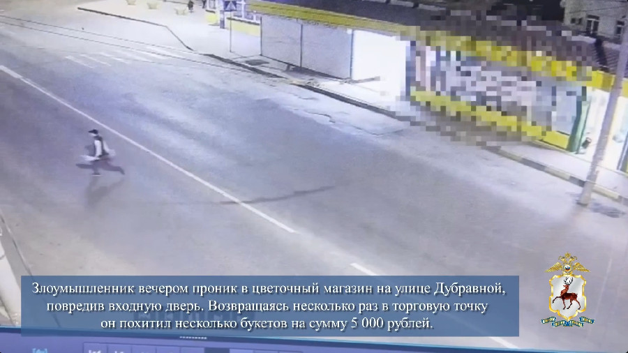 18-летний молодой человек проник в цветочный магазин на улице Дубравной, повредив входную дверь. Оттуда он похитил цветочные композиции на сумму 5 000 рублей. Ранее нижегородец уже был судим за имущественные преступления. Молодой человек признался в содеянном и пояснил, что похищенные цветы он раздал на улице прохожим.
