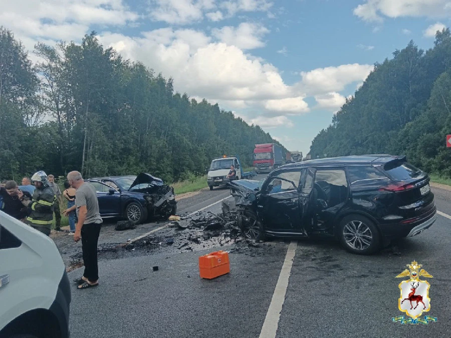 Два человека погибли, еще трое, в том числе ребенок, пострадали в ДТП в Воротынском округе. Во вторник на трассе М-7 «Волга» недалеко от деревни Никольское лоб в лоб столкнулись две легковушки Geely Atlas и Audi, сообщает ГУ МВД по региону.