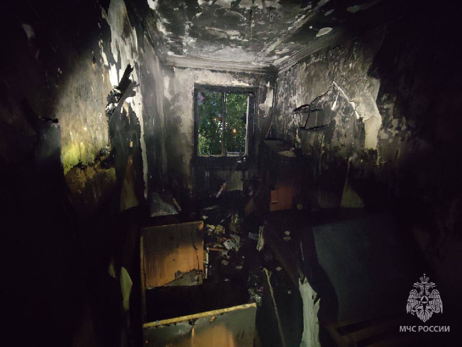 Пожар произошел сегодня на первом этаже здания около 3 часов ночи. Из дома эвакуировали 9 взрослых и 1 ребенка. Огонь на площади 21 квадратный метр потушили 27 специалистов МЧС России. Обгорела внутренняя отделка квартиры и имущество. Обошлось без пострадавших.