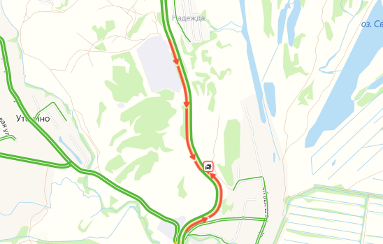 Вот так выглядит этот 3-километровый участок по состоянию на 14.30 по информации портала Яндекс.Пробки