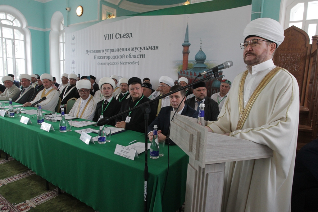 После открытия Съезда и чтения аятов священного Корана перед делегатами выступил муфтий Гайнутдин, который дал свою высокую оценку деятельности нижегородской мусульманской общины и состоянию государственно-конфессионального взаимодействия в регионе. Глава ДУМ РФ отметил, что Духовным управлением мусульман Нижегородской области в последние годы были воплощены важные социальные, образовательные и научные проекты, многие из которых выросли до федерального округа и востребованы во многих регионах.