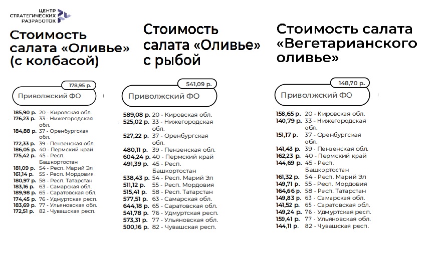 Так, на приготовление «Оливье» с колбасой нижегородцы потратят 176 руб. 23 коп., вариант с рыбой обойдется в 525 руб., а вегетарианский будет стоить 140 руб. 79 коп.