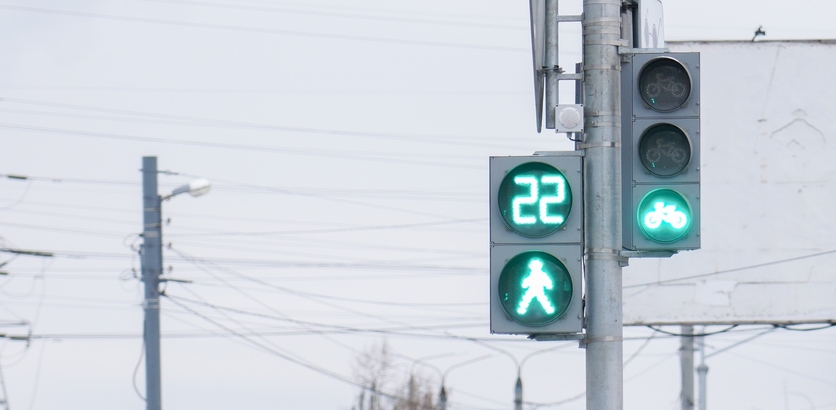 Также в местах, где велодорожки пересекают проезжую часть, устанавили светофоры, регулирующие движение велосипедистов.