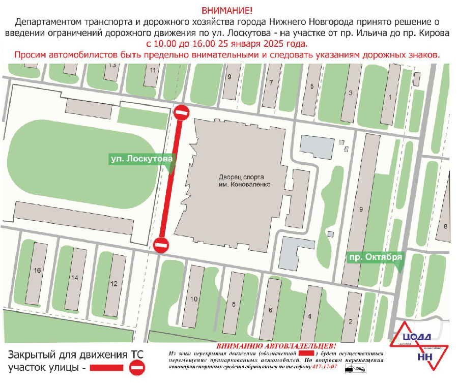 Движение ограничат 25 января в районе Дворца спорта им. Коноваленко