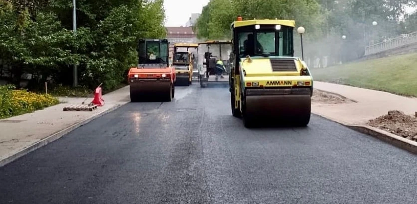 На участке проспекта Ленина длиной 1,5 км полностью установлены бортовые камни, отремонтированы тротуары, а выравнивающий слой готов на 99%.