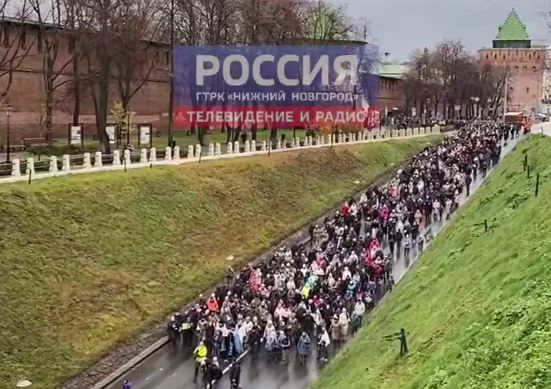 Шествие стартовало от Михайло-Архангельского собора в кремле. Колонна с образом Богородицы идет по Зеленскому съезду к площади Народного единства.
