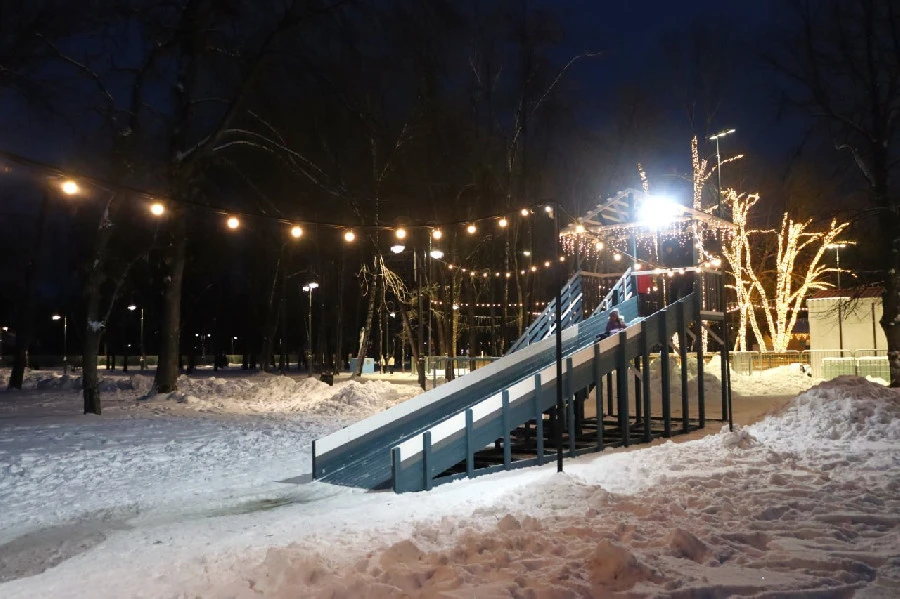 В парке 1 Мая появилась новая ледяная горка — длиной целых 9 метров