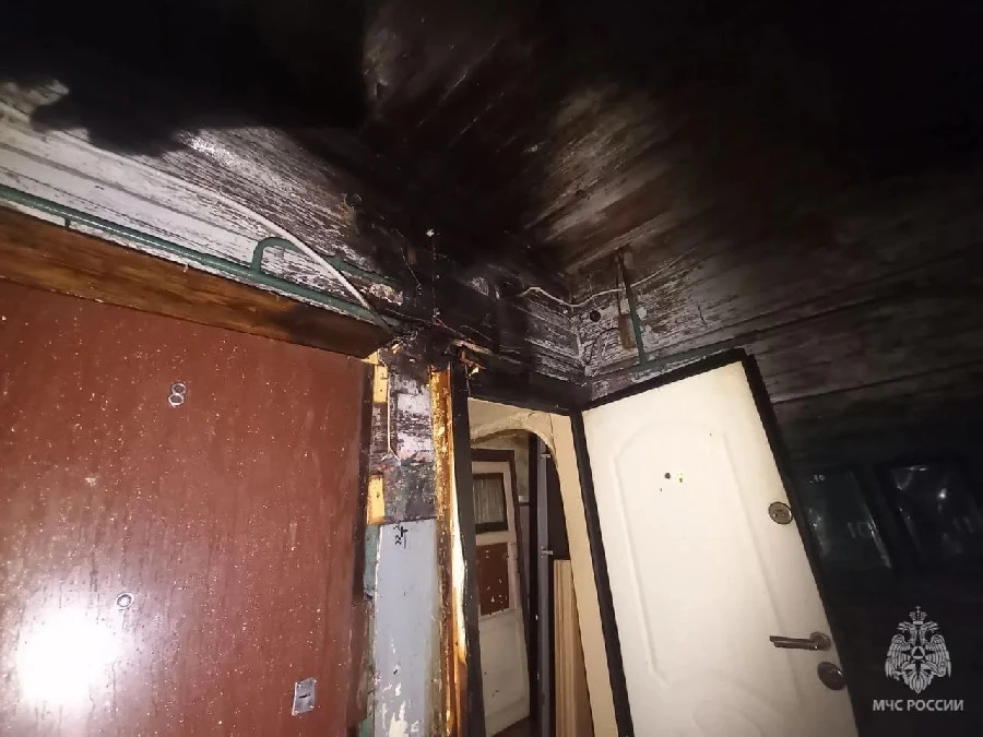 Пожар охватил входную дверь в квартире на улице Снежная. Всего были эвакуированы 4 человека, среди них 3 детей.