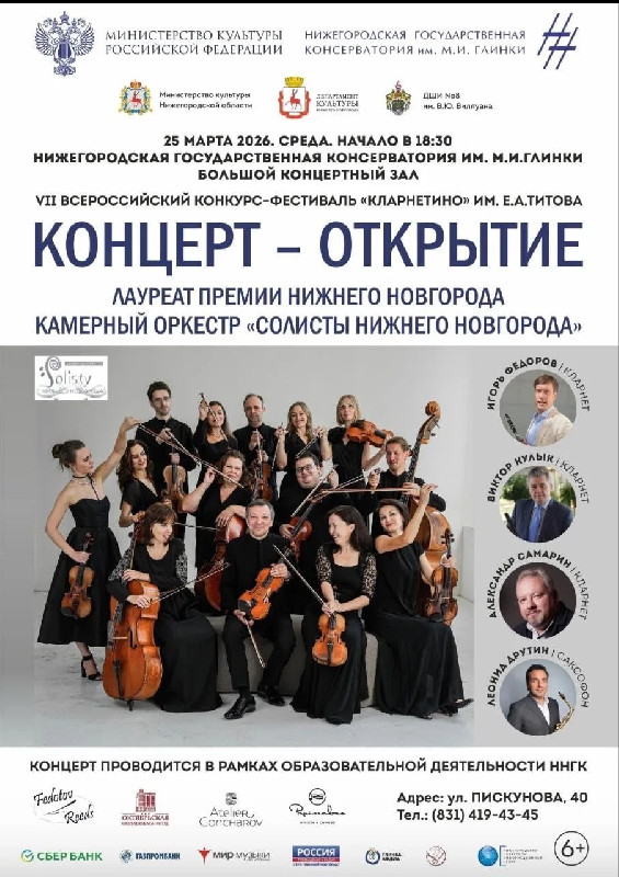 VII Всероссийский конкурс-фестиваль «Кларнетино» имени Е.А. Титова пройдет с 25 по 28 марта в Нижнем Новгороде