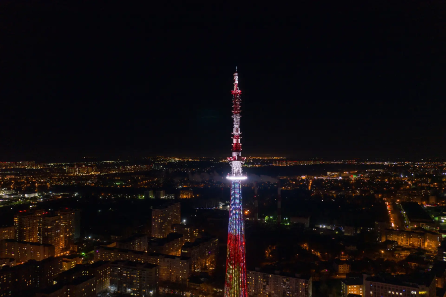 Грани телебашни украсит световой «занавес», символизирующий сценические портьеры, маски комедии и трагедии, и бегущая строка с фразой: «27 марта – Ночь театрального искусства».