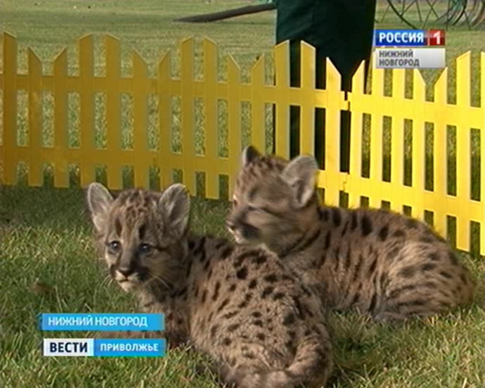 В нижегородском зоопарке "Лимпопо" счастливое событие. Месячные детеныши пумы впервые в своей жизни вышли на прогулку. Один за другим маленькие пумята-тройняшки выходят на лужайку. Две сестренки и отважный брат впервые покинули стены привычного вольера.