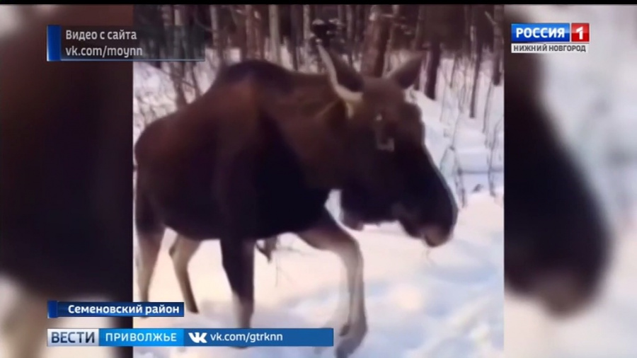 24 февраля 2019, ГТРК "Нижний Новгород" (видео). Осторожно, лось на дороге. На этой неделе жители Нижегородской области стали свидетелями такой сцены: молодой лось средь бела дня прогуливался по автомобильной трассе в Семеновском районе. Вел себя лось абсолютно спокойно, отметили очевидцы - авторы видео. Вероятно, животное искало пищу. Как поясняют в Комитете госохотнадзора, в зимнее время дикие лоси и кабаны часто появляются вблизи автотрасс в поисках дополнительной подкормки. В связи с этим автолюбителям нужно быть внимательнее на дорогах. С начала этого года в регионе зарегистрировано уже три дорожных проишествия с участием диких копытных.