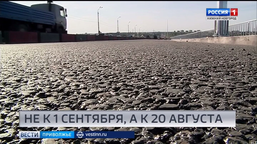 5 июня 2019, ГТРК "Нижний Новгород" (видео).Ремонт дорожного покрытия на Мызинском мосту закончат чуть раньше - к 20 августа, а не к началу учебного года, как планировали.