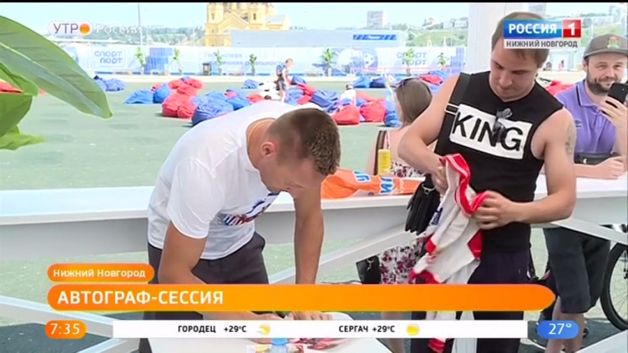 15 июня 2019, ГТРК "Нижний Новгород" (видео) Бывшие футболисты сборной России Андрей Тихонов, Дмитрий Хлестов и Руслан Пименов а Приволжской столице провели автограф-сессию.