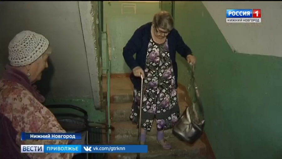 Узнав о нашем визите, 83-летняя Анна Шанцева поспешила спуститься, но это оказалось задачей не из легких, перил в первом подъезде нет, давно сломаны - сетуют пенсионеры, и уже 2 года они не могут добиться ремонта.
