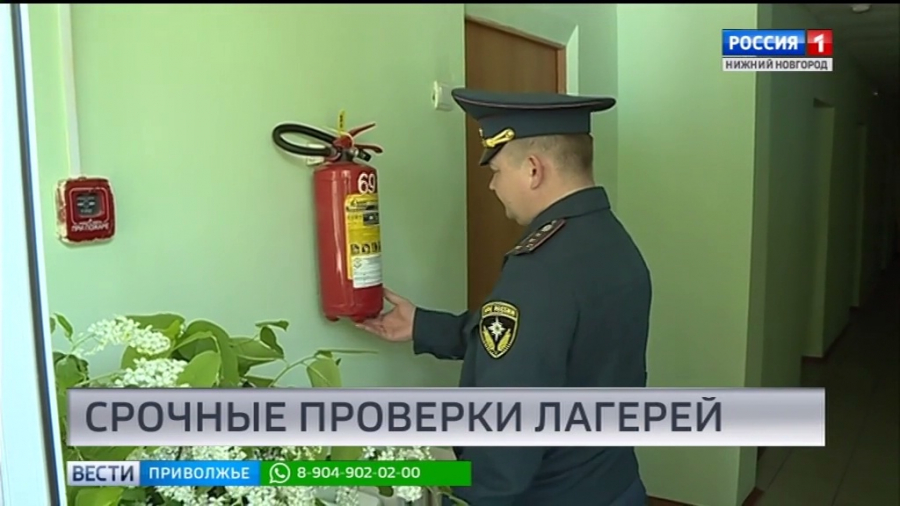 27 июля 2019, ГТРК "Нижний Новгород" (видео). В Нижегородской области, как и по всей России, пройдут внеплановые проверки всех детских лагерей и баз отдыха. Такое распоряжение после пожара в Хабаровском крае дал глава МЧС России Евгений Зиничев.