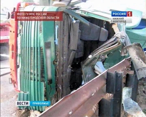 В результате многотонная машина опрокинулась на обочину дороги. Водитель оказался зажат в кабине. Прибывшие спасатели извлекли пострадавшего, после чего его отправили в Сергачскую ЦРБ.