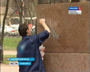Памятники и монументы Нижнего Новгорода помоют и приведут в порядок к празднику Победы. Сегодня сотрудники городского департамента культуры чистили памятник героям революции 1905 года, который находится в сквере на площади Свободы.