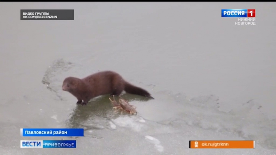 16 февраля 2020, ГТРК "Нижний Новгород" (видео). Американская норка вышла на охоту в Павловском районе. Пушистый зверек решил полакомиться речными раками. Фотограф застала хищника за обедом и выложила видео в социальную сеть. Пользователи уже пошутили в комментариях, что улову маленького зверька позавидует любой рыбак. Норке удалось выловить из Оки двух раков.
