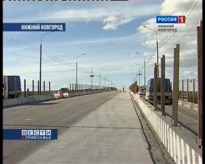 Валерий Шанцев, губернатор Нижегородской области: "Движение по мосту будет открыто по 5 полосам: 2 полосы в одну сторону и средняя полоса - для реверсивного движения. Полосы делаются в соответствии со снипами, потому что предыдущее распределение по 6 полосам было очень зауженным."