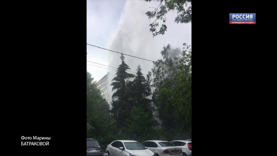 17 июня 2020, ГТРК "Нижний Новгород". Необычный фонтан на улице Володарского. Прямо из под земли вырвался столб воды высотой с 12-этажный дом. Как сообщают в соц.сетях, это был прорыв системы водоснабжения. Аварийные службы сработали оперативно, но пострадали машины. припаркованные рядом с необжиданным фонтаном