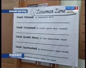 "Золотого преподавателя" выбирают студенты Нижегородского государственного технического университета имени Р.Е.Алексеева. Лучший лектор, а также самый справедливый, самый стильный и самый остроумный получит студенческую награду: "Золотую зачетку".