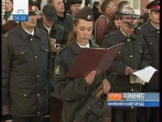 Почти 300 курсантов-первокурсников Нижегородской академии МВД приняли присягу на верность Родине. Среди будущих милиционеров более 100 – представительницы прекрасного пола. В этом году событие было приурочено к освящению звонницы при храме-часовне во имя святого Георгия-Победоносца на территории академии. По словам начальника ВУЗа Вячеслава Каныгина, благодаря религиозному воспитанию так называемых оборотней в погонах будет меньше.