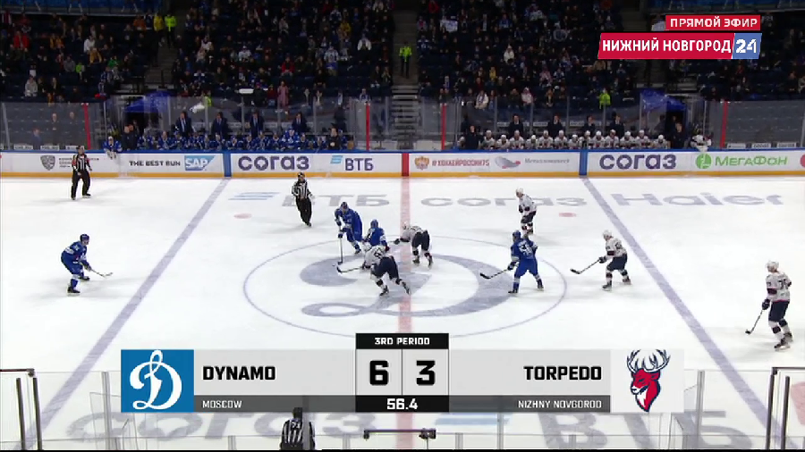 Трансляцию матча КХЛ "Динамо" (М) - "Торпедо" ведет телеканал "Нижний Новгород 24" . Следить за ходом игры можно, включив Радио Маяк (FM 92,4).
