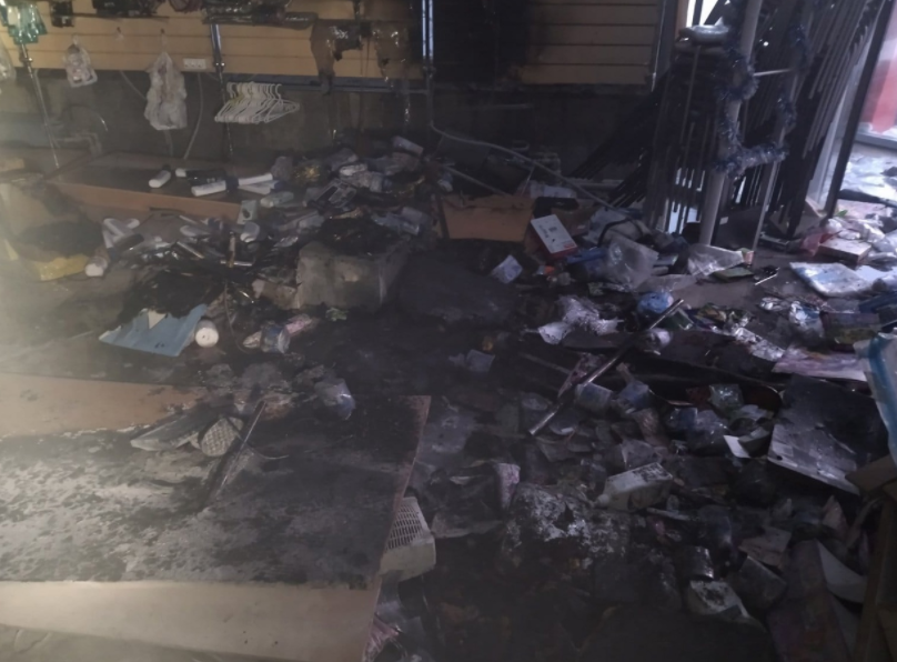 По прибытии первого пожарно-спасательного подразделения наблюдалось задымление на 1-ом этаже здания. Площадь пожара составила 10 кв.м. - происходило горение имущества в магазине обуви и одежды «5 сезон».