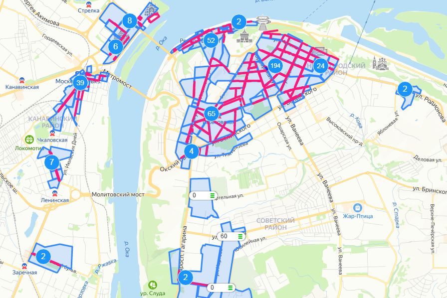 В настоящий момент в городе работают три стоянки закрытого типа: на площади Революции около ж/д вокзала, на площади Горького и на улице Ковалихинской около Центра международной торговли. Кроме того, в тестовом режиме действуют более 50 парковочных зон открытого типа.