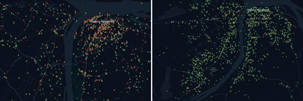 Кроме того, исследование было дополнено тепловой картой самых популярных мест в Нижнем Новгороде.