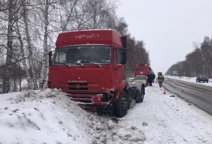 По информации ГИБДД, водитель автомобиля Рено не справился с управлением, выехал на полосу встречного движения и совершил столкновение с автомобилем КамАЗ.