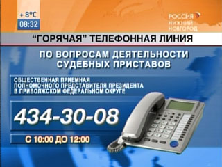 На вопросы граждан ответит заместитель начальника отдела организации дознания и административной практики Управления Федеральной службы судебных приставов по Нижегородской области Вихарева Наталья Николаевна. Телефон общественной приемной: 434-30-08.