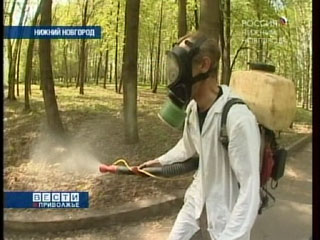 Странных людей в масках накануне видели многие нижегородцы в парке Швейцария. Они опрыскивали кусты, деревья и траву странной жидкостью. Ничего загадочного: руководство парка пригласило специалистов обработать зеленые насаждения противоклещевыми реагентами.