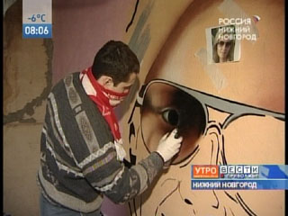 Вместо кисточки – баллончик краски, а респиратор - шарф с кубка УЕФа 98-го года. Алексей - художник со стажем. Девушку, чей портрет рисует, никогда не видел, но к делу подошел со всей душой. Подобную миссию купидона уже выполнял не раз, но это граффити - явление уникальное.