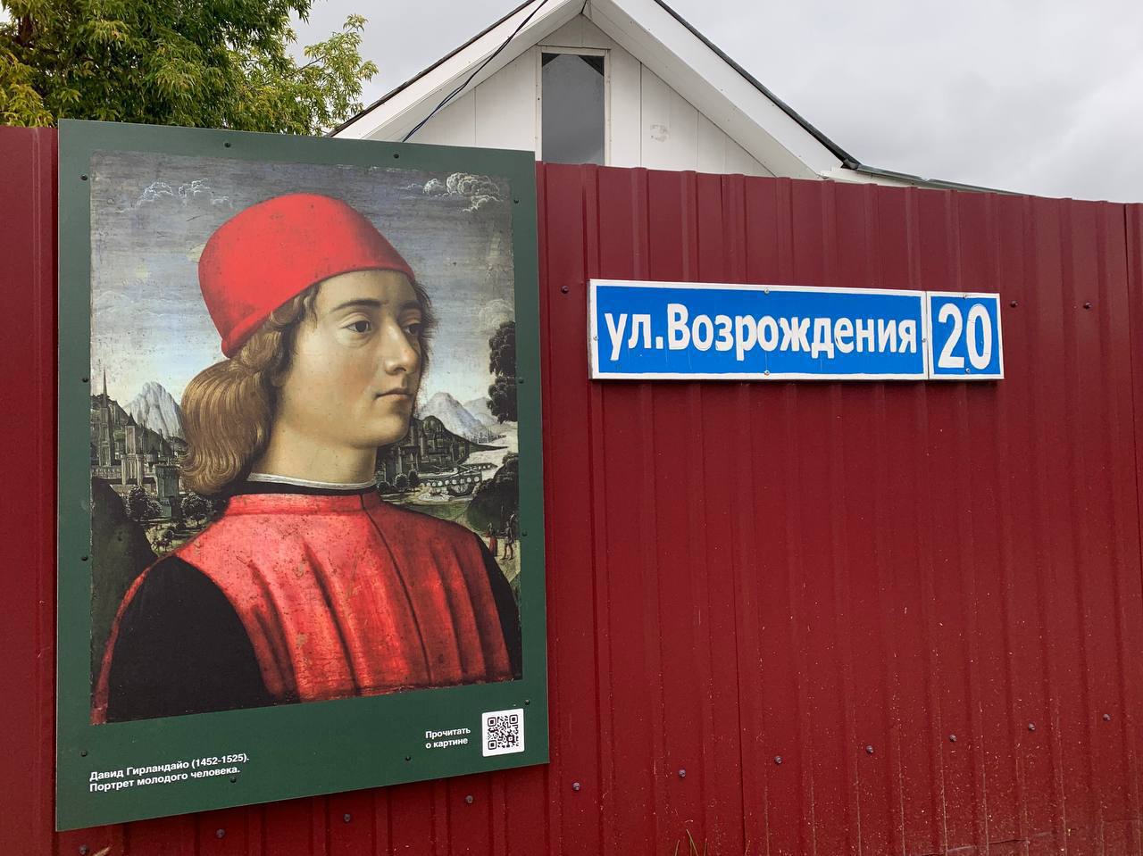 Репродукции портретов работы итальянских мастеров XIV — XV веков украшают заборы частных домов. Всего репродукций 15. Каждая - снабжена QR-кодом, который позволит любому прохожему больше узнать об авторе, произведении и самой эпохе Возрождения.
