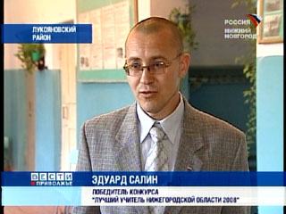 Секрет успеха Эдуарда Александровича в том, что он разделяет учеников на несколько групп, в зависимости от успеваемости и дает задания разной сложности. Дети, которые в точных науках не сильны, лучше понимают предмет, а отличники не скучают – решают задачи повышенной сложности. Но когда сельского учителя попросили рассказать о своих достижениях, он засмущался, словно первоклашка у доски. Эдуард Салин, победитель конкурса "Лучший учитель Нижегородской области 2008": "Я не думал, что я одержу победу, во-первых, соперники серьезные, да и сельский учитель чувствует себя скромно на фоне городских коллег".