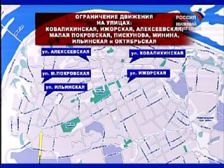 Ограничено движение на следующих улицах - Ковалихинская, Ижорская, Алексеевская, Малая Покровская, Большая Покровская, Пискунова, Минина, Ильинская и Октябрьская. Как нам сообщили в городской административно-технической инспекции, движение здесь будет восстановлено к середине июня.