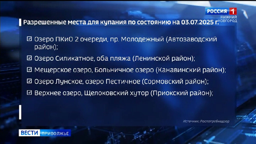 Напоминаем, что отдыхать можно только в местах, которые соответствуют требованиям санитарного законодательства. Качество воды находится под постоянным контролем Роспотребнадзора. Специалисты регулярно проводят лабораторные исследования. В настоящий момент купание разрешено на 17 пляжах региона. Их список вы видите на своих экранах.
