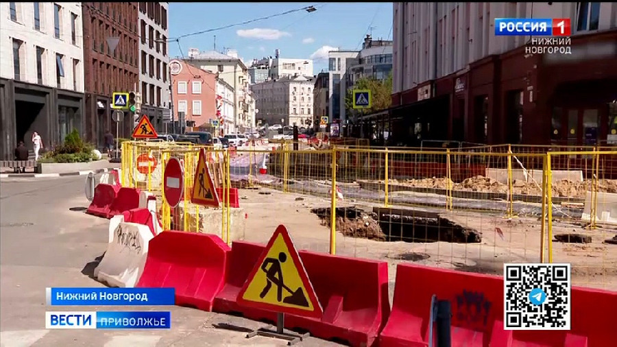 "На улице Ошарская в Верхней части Нижнего Новгорода, на участке от Октябрьской до Пискунова, ведутся ремонтные работы по замене трамвайных путей. Здесь одностороннее движение, но до сентября этого года проехать можно будет только по одной полосе."