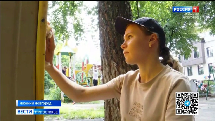 Уже две недели ребята делят детскую площадку со взрослыми. Но взрослые не участвуют в играх, они заняты благоустройством территории: делают уборку, спиливают сорные кустарники и сухие ветки. Помогать "Ласточке" взялась одна из команд молодежного образовательного проекта "Лидеры Нижегородской области".