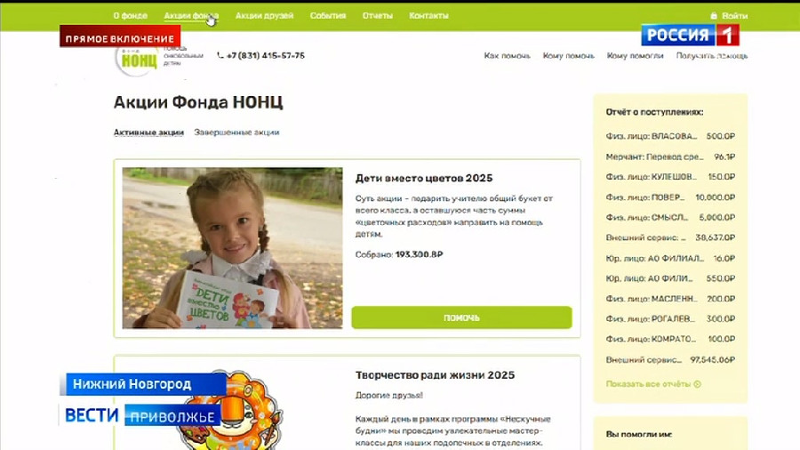 Акция "Дети вместо цветов" состоится в этом году в Нижегородской области в десятый раз. Её цель — помощь тяжело больным детям. С подробностями на прямую связь со студией выходит Ирина Жирнова, исполнительный директор благотворительного фонда "НОНЦ". Ирина Жирнова напомнит, в чем суть акции, как принять в ней участие, и расскажет о результатах акции в предыдущие годы.