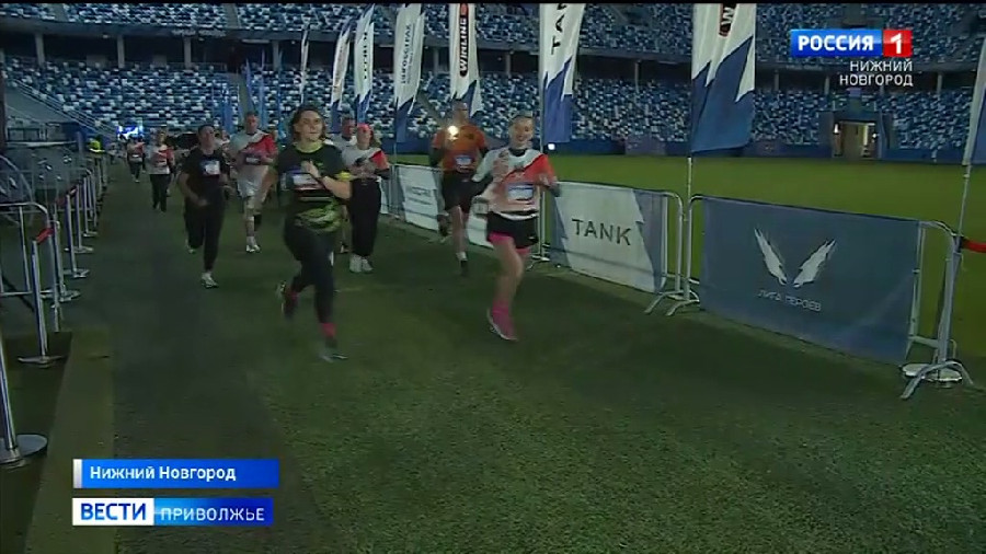 Евгений Карпов, корреспондент: Огромное количество людей приехало сюда - в район стадиона Нижний Новгород, чтобы показать и доказать, самое главное самому себе, что ночью забег, это круто.