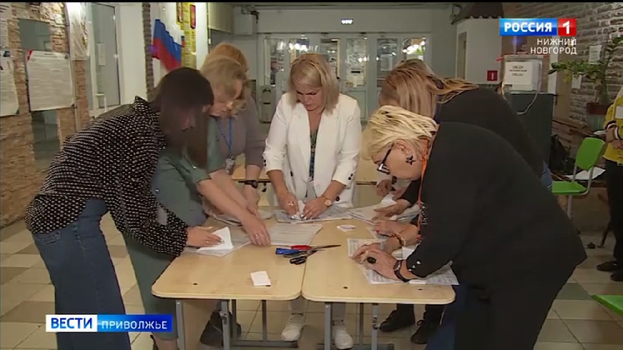 Все 1275 избирательных участков накануне закрылись ровно в 20 часов. Затем участковые избирательные комиссии приступили к подсчету голосов. Неиспользованные бюллетени "погасили". (Это кадры с закрытия избирательных участков в Нижнем Новгороде в лицее номер 40. На участках, оборудованных комплексами обработки избирательных бюллетеней, процедура подсчета занимает около часа.