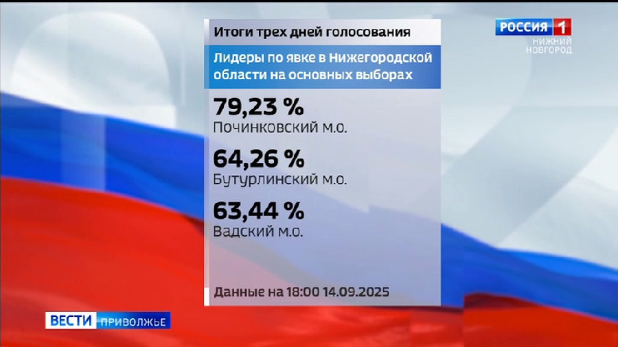 Самыми активными голосующими на 18 часов 14 сентября оказались жители Починковского округа. Там явка составила почти 80%. На втором месте Бутурлинский, где свою волю выразили около 65% голосующих. И чуть больше 63% избирателей отдали свой голос в Вадском округе.