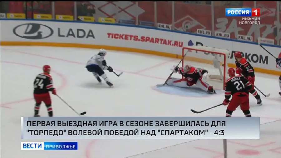 Новая победа нижегородского «Торпедо»! Уже четвертая подряд. Вчера подопечные Алексея Исакова в овертайме обыграли московский «Спартак» со счетом 4:3. Главными творцами побед стали нападающие. Сергей Гончарук набрал 6 очков по системе «гол+пас», а Владислав Фирстов отдал 3 результативные передачи и дважды поразил ворота соперников. 4 победы в 4 матчах оставили нашу команду единственной в лиге, идущей без потерь. Уже завтра «Торпедо» в гостях сыграет с «Сочи».