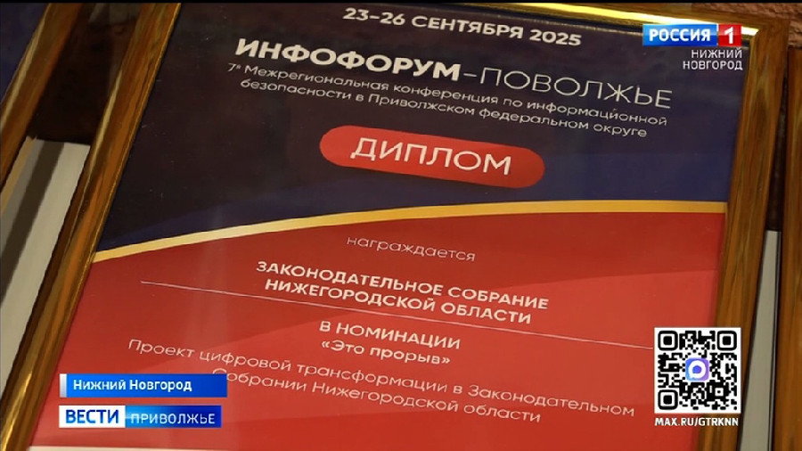 Проект цифровой трансформации Законодательного Собрания Нижегородской одержал победу за обеспечение информационной безопасности в сфере перспективных цифровых технологий. Награду вручали во время седьмой Межрегиональной конференции "Инфофорум-Поволжье 2025". Он проходит по инициативе Законодательного Собрания Нижегородской области. Впервые на нем представлена секция "Цифровая трансформация и информационная безопасность в законодательных органах государственной власти". В конференции принимают участие свыше 350-ти представителей различных субъектов России.