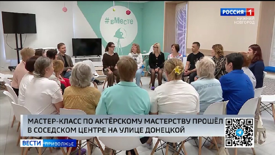 Актёрское мастерство теперь можно освоить в нижегородских соседских центрах. Мастер-класс прошёл в центре на улице Донецкой в Приволжской столице. На занятие собрались вокалисты, танцоры и актёры из творческих коллективов ТОСов и соседских центров. Большинство из них — люди самых разных профессий, для которых творчество стало важной частью жизни. Занятие провела актриса театра «Вера» Мария Попова. По её словам, главная задача — помочь людям раскрыться, изучить себя и свои эмоции.