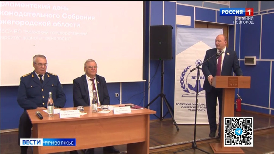 Евгений Люлин, Председатель Законодательного Собрания Нижегородской области: Мы же подписали соглашение, договорились о том, о постоянном сотрудничестве: и привлекать науку в разработку наших законодательных актов, и привлекать молодых ребят для того, чтобы они активно в среде молодежного парламента работали, предлагали свои молодежные инициативы. Это у нас системная работа со всеми вузами.